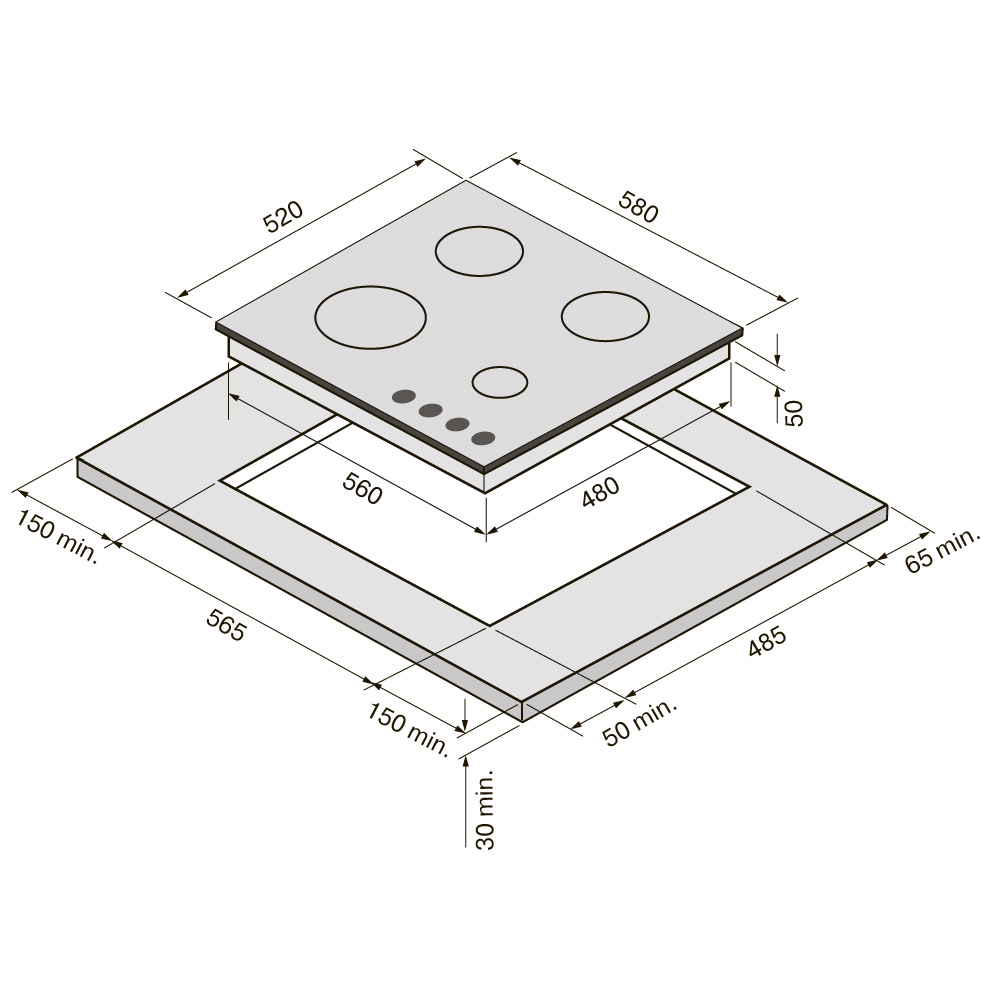 Материал поверхности: закалённое стекло — эстетичное, термостойкое, простое в уходе.