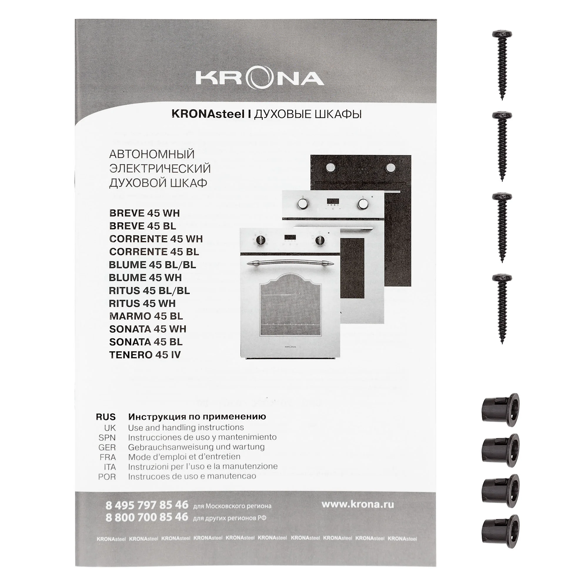 KRONA RITUS 45 WH G2 — духовой шкаф для тех, кто ценит удобство, функциональность и рациональное использование пространства. Белый цвет модели добавит интерьеру изысканности и универсальности.