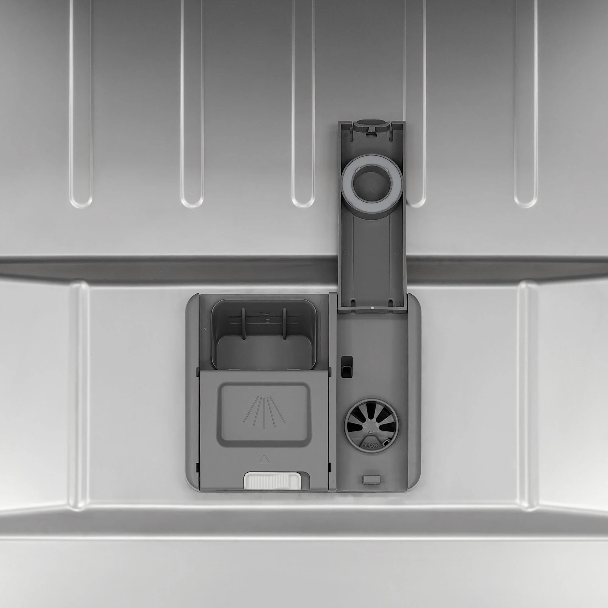 Вместимость 14 комплектов Внутри 3 уровня загрузки с регулируемой по высоте корзиной и внутреннее освещение, которое обеспечивает отличную видимость даже при загрузке в вечернее время.