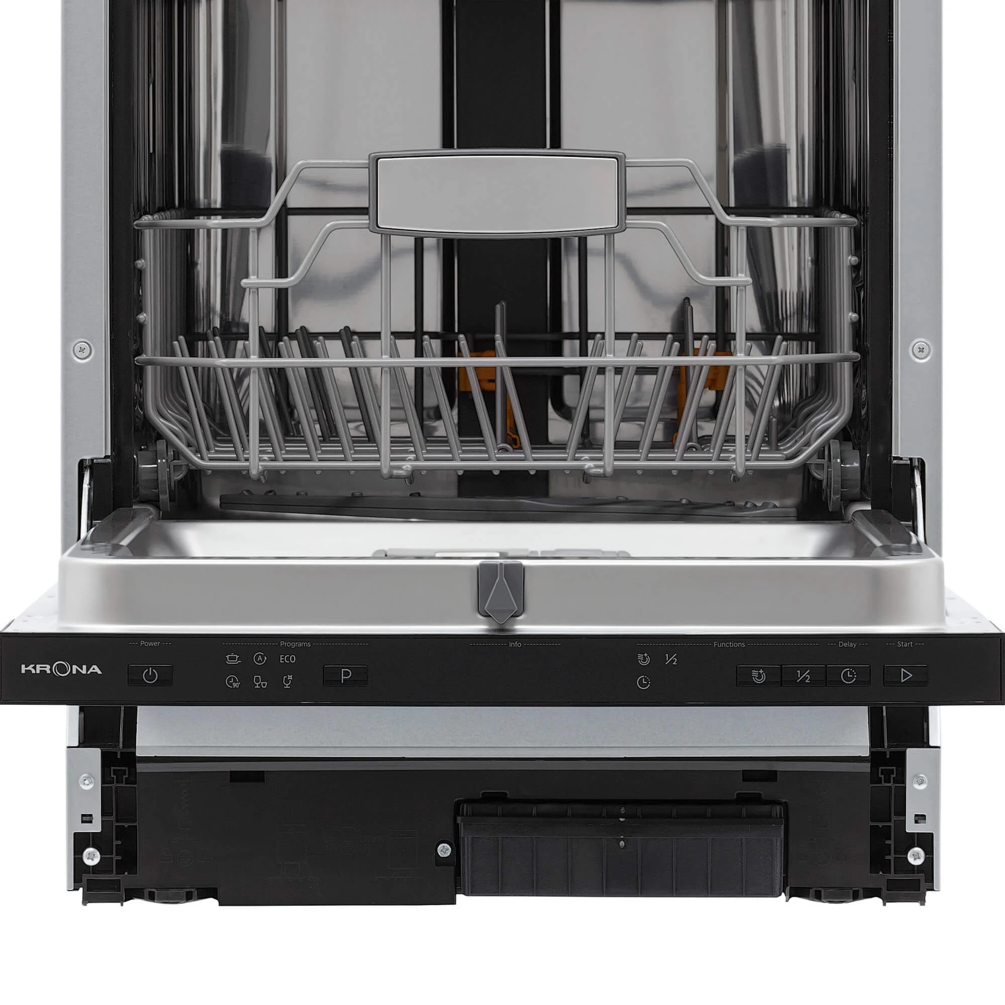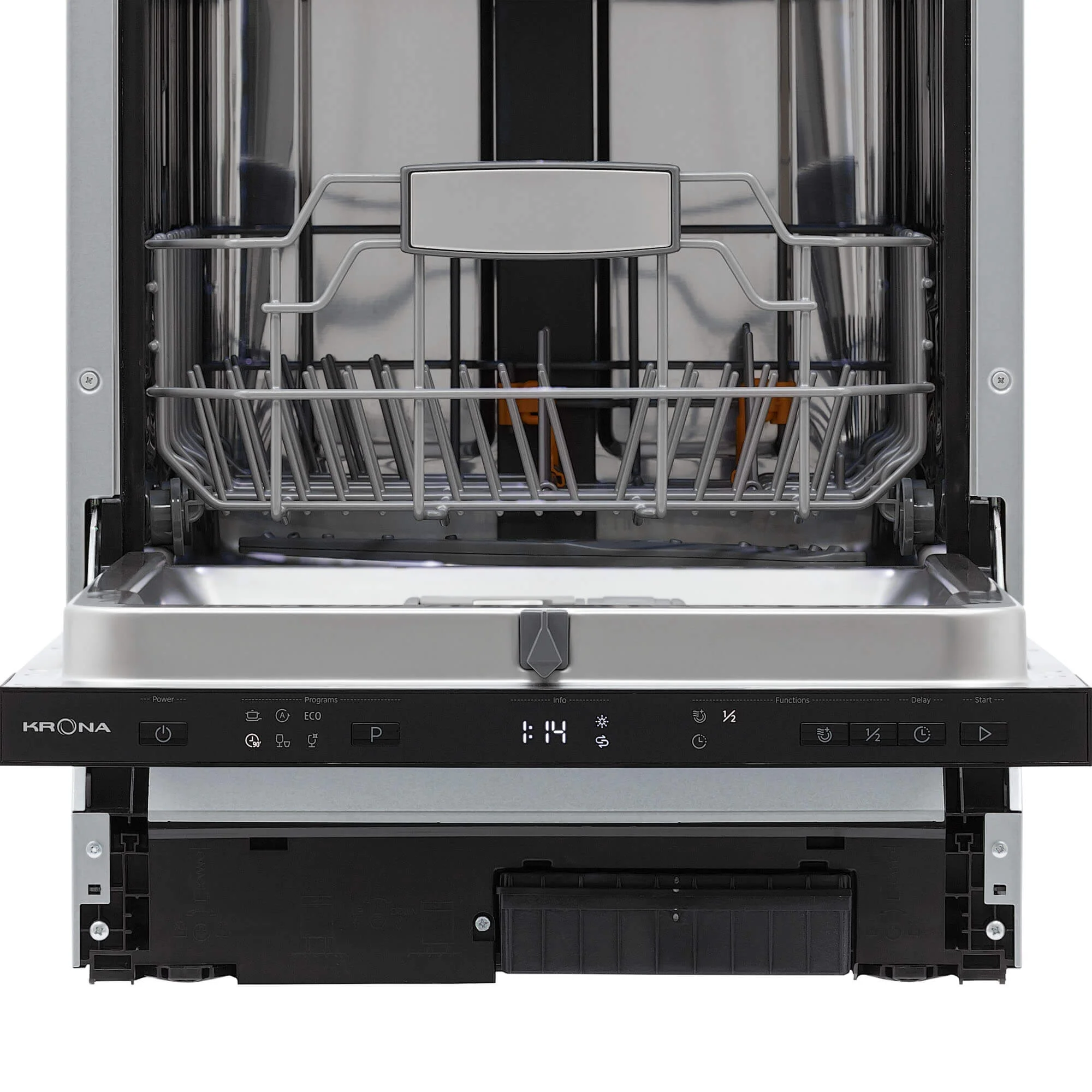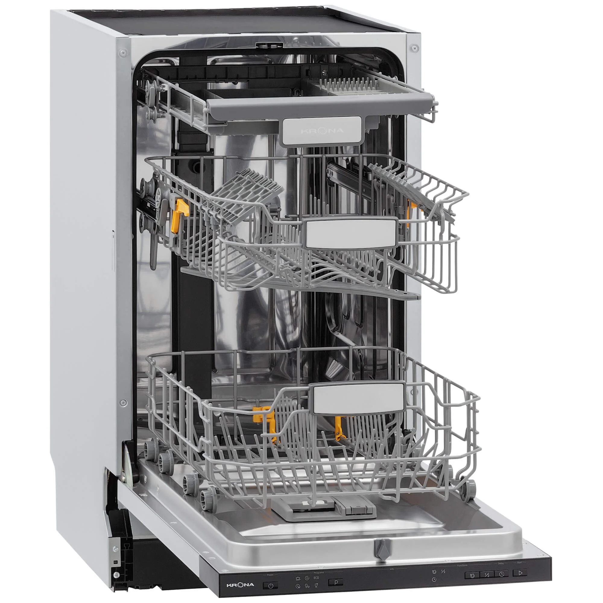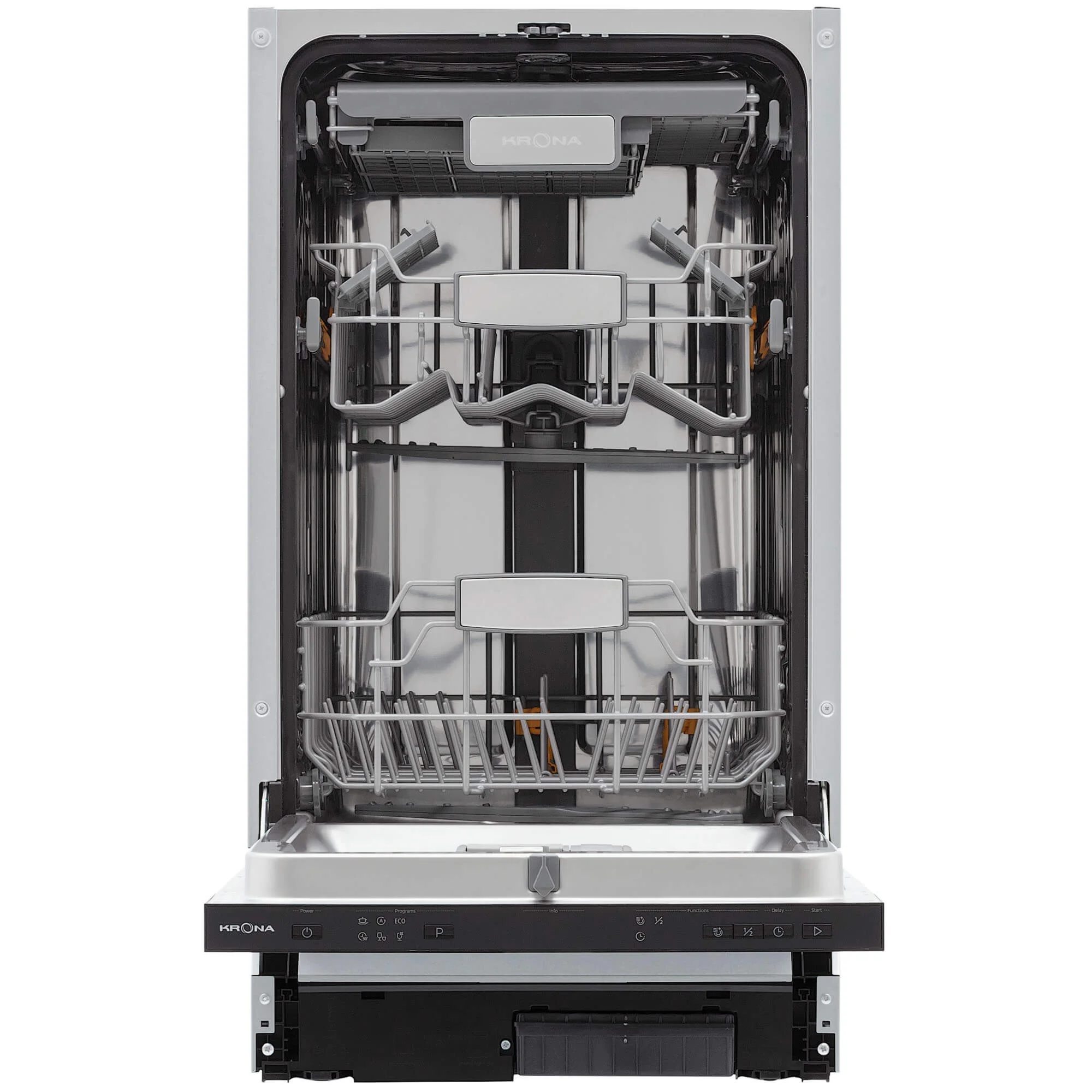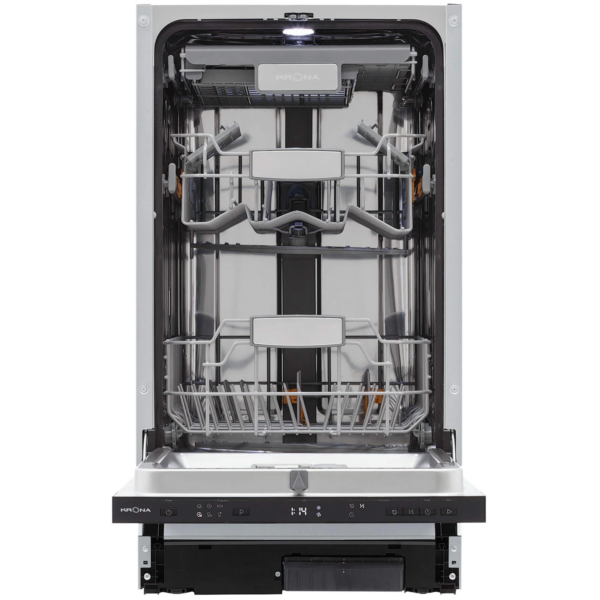 Управление интуитивно понятно: электронные кнопки и LED-дисплей, 6 программ для любых задач и разного типа посуды, индикаторы наличия соли и ополаскивателя.